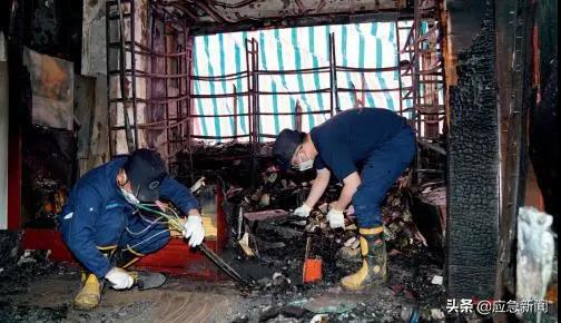 火灾调查人员在勘察和清理火灾现场。(杭州市消防救援支队提供)